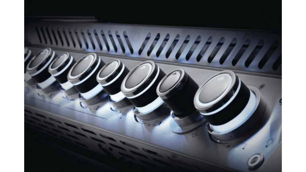 On the control panel, each dial is backlit with a stylish cycle lighting system. Lights will change colour until you choose the best effect for you. These lights will automatically turn on when you stand in front of the BBQ. As well as this, an illuminated Napoleon logo will project onto the ground when the lights are on. The lights will automatically turn off after 15 minutes if you are not standing in front of the BBQ. Internal lights in the hood make it easy to cook whatever time of day or night it is.